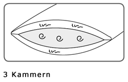 Dank der speziellen 3-Kammer-Machart und der Verwendung verschiedener Füllmaterialien kombiniert dieses Kissen ideal eine flauschig-weiche Liegefläche mit stützendem Innenkern. Die 3 Kammern sind durch Stofflagen voneinander abgetrennt und verhindern so das Verrutschen und die Vermischung der unterschiedlichen Füllmaterialien. Nach dem aufwändigen Nähprozess in Handarbeit werden die einzelnen Kammern abgefüllt.